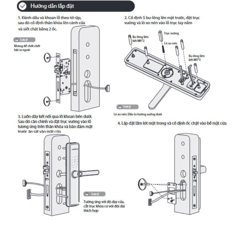 - Âm thanh cảnh báo phá khóa khi có lực mạnh tác động lên mặt ngoài của khóa.